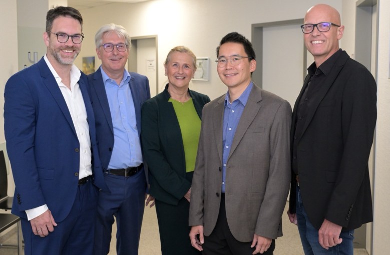 01-10-2025-GFO Kliniken Vorstellung neuer Chefarzt der Neurologie Dr John- Ih Lee im Marienkrankenhaus v.l. Dr Robert Kreilkamp Dr. Jörg Köster Kfm. Direktor Dr. Barbara Florange Dr John- Ih Lee (neuer Chefarzt Neurologie) Dr Thorsten Löhr (ärztl Direktor)