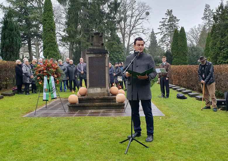 Bürgermeister Marcel Kreutz bei seiner Rede zum Volkstrauertag. Foto: Stadt GL