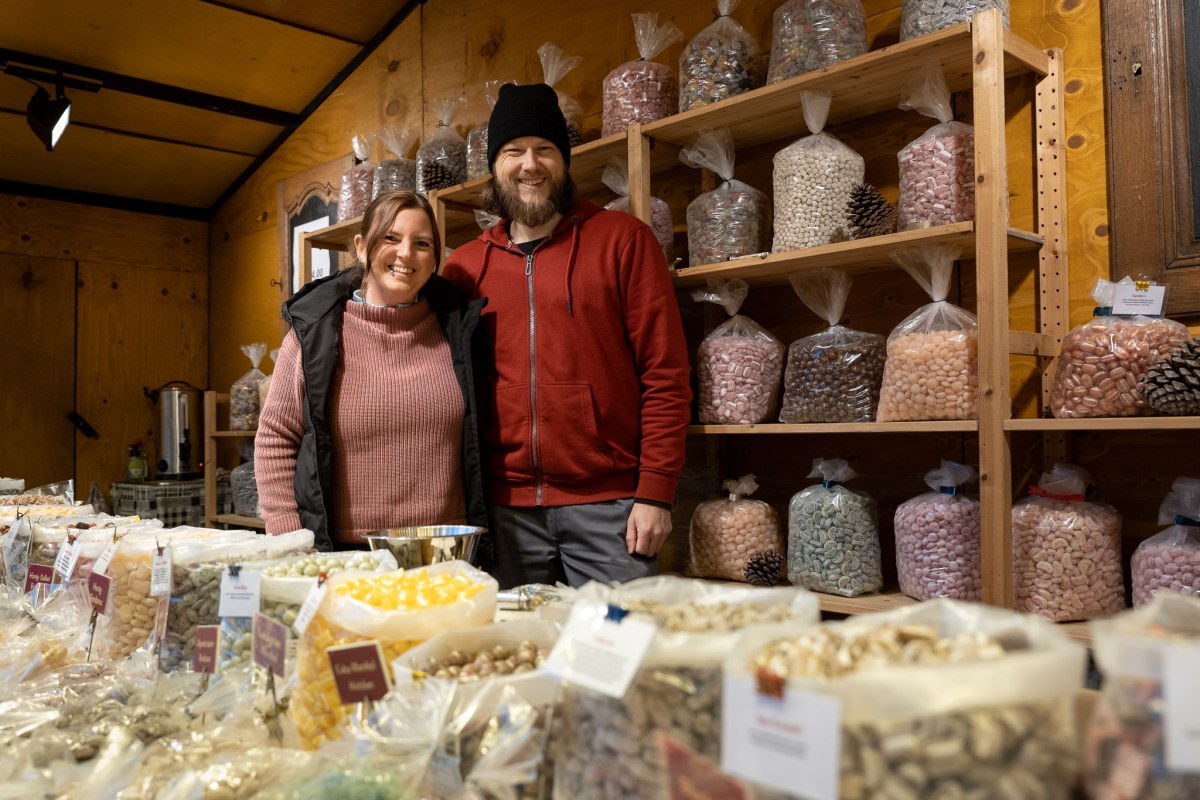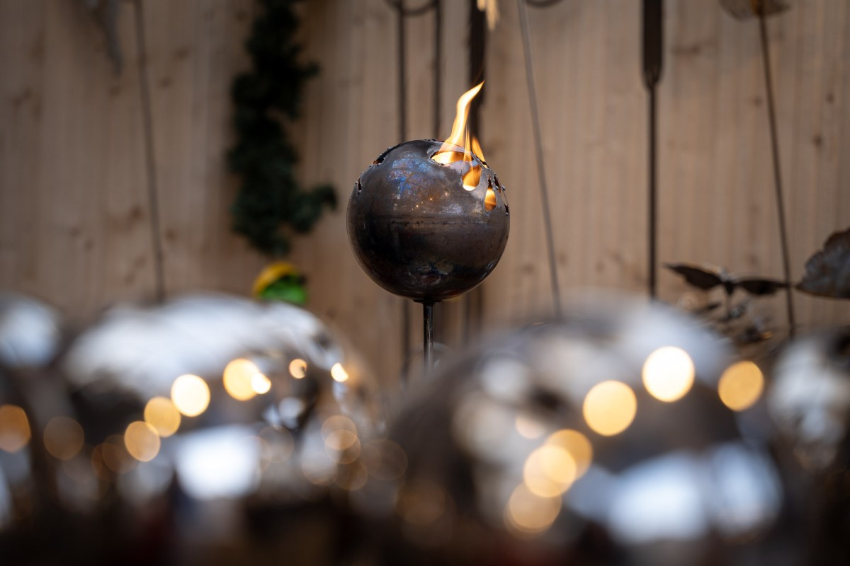Trotz aller Traditionen: Genau gleich ist das Angebot des Weihnachtsmarktes nie. Jedes Jahr kommen ein paar neue Händler:innen dazu. Neu im Sortiment sind dieses Mal etwa Keramikreiben – zum Reiben von Zutaten wie Ingwer, Knoblauch oder Käse – und von Hand gefertigte Küchenhelfer aus Olivenholz: Salatbesteck, Mörser, Untersetzer, Schalen, Schneide- und Servierbretter. Die intensive Maserung macht jedes Produkt zu einem Unikat.