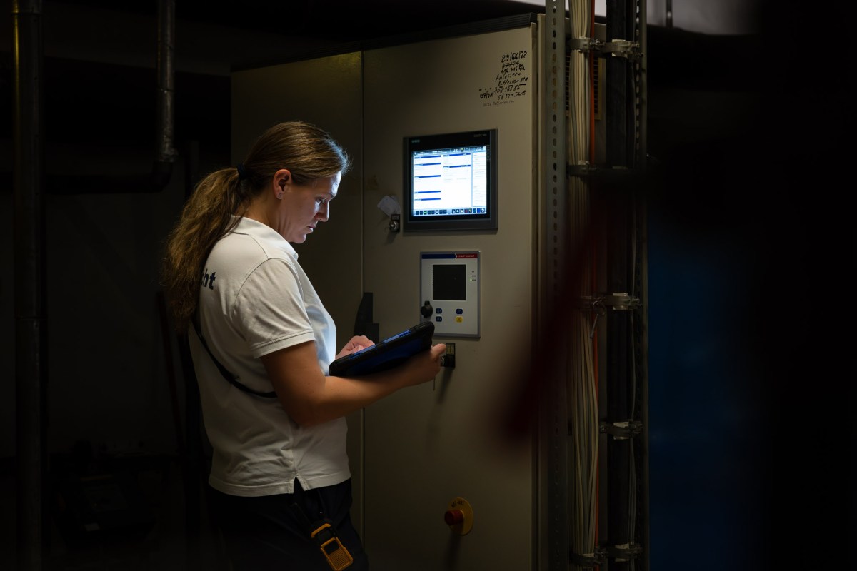 Nach einer gefühlten Ewigkeit im Keller bilanziert die Fachfrau: „Ich hatte heute viele Störungen. Aber die sind alle harmlos.“ Neben den niedrigen Werten hat sie eine Störung bei einem Wasserkreislauf festgestellt. Eine Treibwasserpumpe lief nicht, die Sicherung hat sie von Hand wieder eingeschaltet. Also nichts, was den Betrieb lahmlegen könnte? „Nein, überhaupt nicht. Hält mich nur auf Trab.“