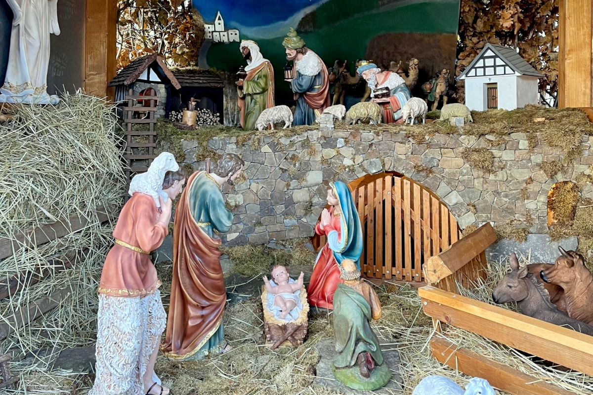 In der Pfarrkirche Sankt Severin in Bergisch Gladbach haben sich die Krippenbauer überlegt, wie es gewesen wäre, wenn Jesus im Bergischen Land geboren wäre. Ganz ideenreich gestalten sie seit Jahren die Krippe für ihre Kirche.