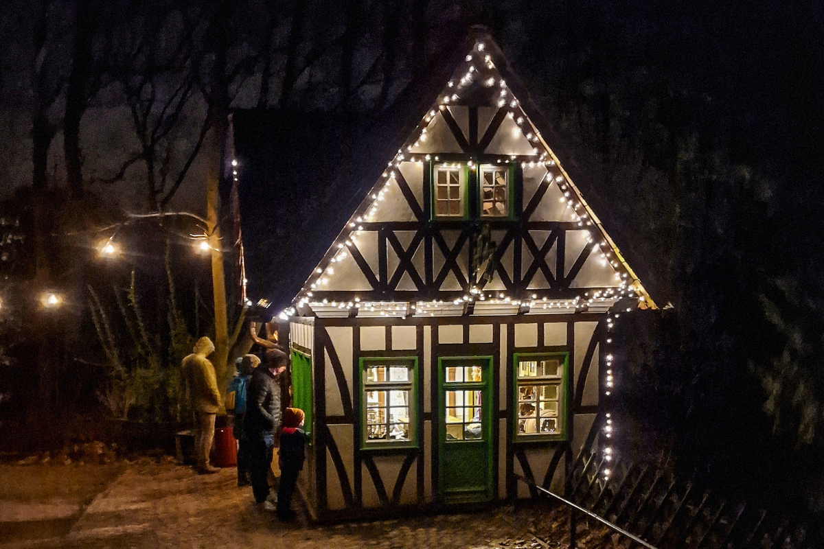 An den Adventswochenenden und den Winterferien verwandelt sich der Märchenwald Altenberg in ein funkelndes Winterwunderland: Tausende kleine Lichter tauchen Wege, Bäume und Märchenhäuschen in stimmungsvolles Licht und schaffen eine ganz besondere Atmosphäre für die dunkle Jahreszeit.