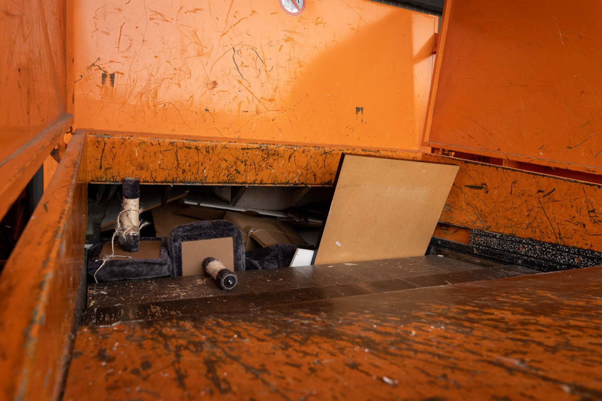 „Herd?“ fragt Mitarbeiter Eduard Isaak einen Kunden, der ein Metallteil Richtung Elektrosachen trägt. „Abzugshaube“, lautet die Antwort. „Dann in den Metallcontainer.“ Barhocker mit Chromstangen und Kunststoffbezug landen ebenfalls dort, während ein Schafsfell für Babys, ein unbenutzter Toilettensitz aus Kunststoff, fleckige Matratzen und immer wieder Möbelteile aus Spanplatten im Sperrmüll landen.