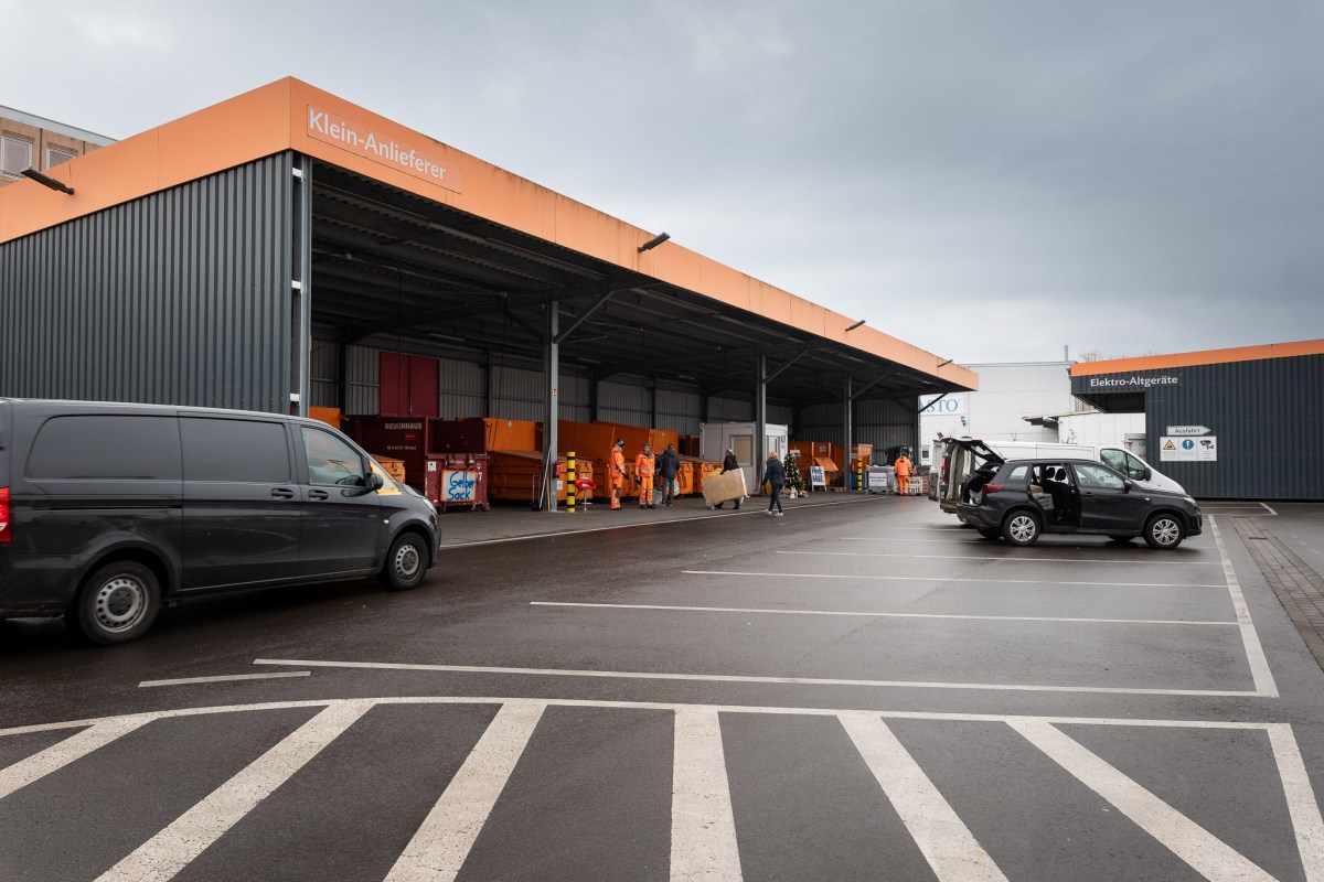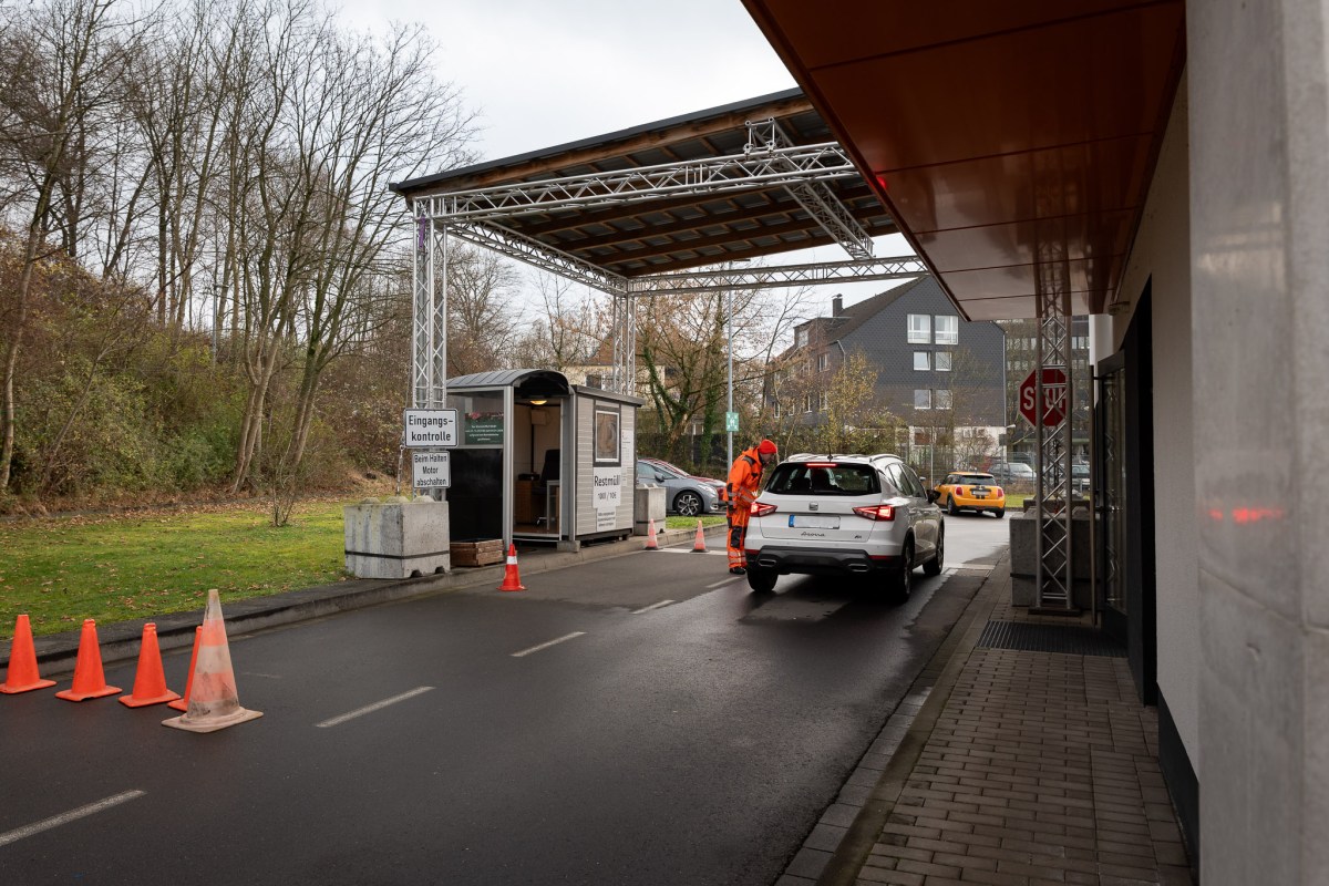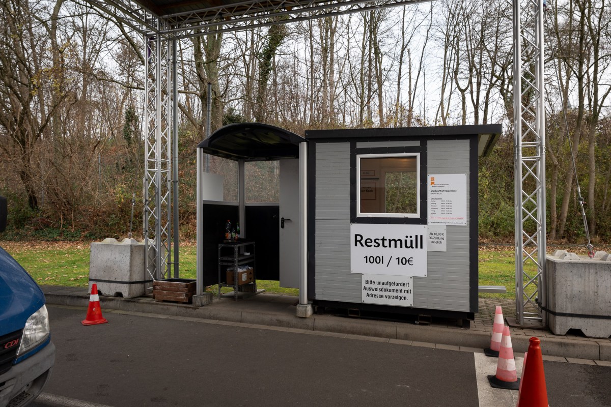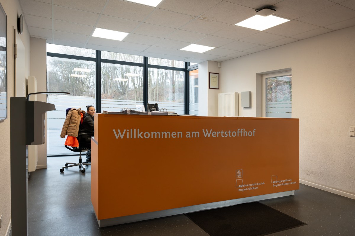 Die Auffahrt führt zur Eingangskontrolle. Ob Sperrmüll, Restmüll, Schadstoffe, Elektrogeräte oder Bauschutt – auf dem Wertstoffhof können Bergisch Gladbacher Dinge loswerden, die sie nicht mehr brauchen. Allerdings nicht umsonst, auch wenn es ein städtischer Betrieb ist. „Restmüll 100l / 10 Euro“, steht auf einem Schild an der Eingangskontrolle. Und auf dem Schild darunter: „Bitte unaufgefordert Ausweisdokument mit Adresse vorzeigen.“