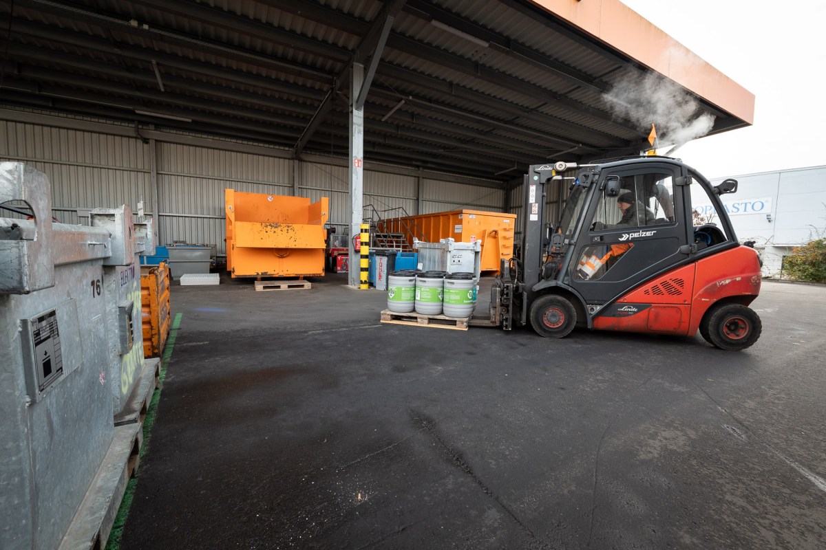 Der Bereich hinter den Containern für Elektrogeräte ist für Kunden gesperrt. Ausgemusterte Kühlschränke werden mit dem Gabelstapler in Container gefahren, die so groß sind wie ein Linienbus. Sobald der Wertstoffhof-Chef anruft, holt die Firma Reloga sie ab. „Wir arbeiten alle zusammen, städtische und private Betriebe“, sagt Höller.
