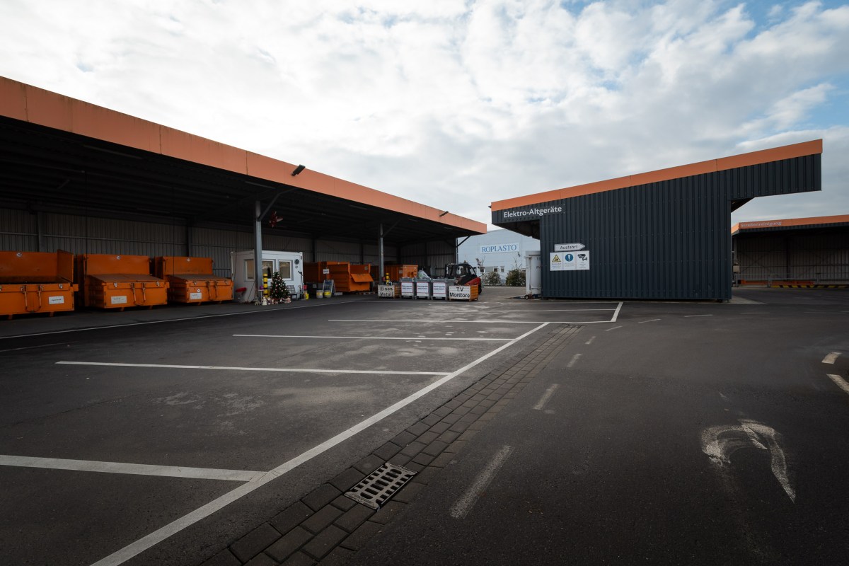 Im Container nebenan stapeln sich Farbeimer. „Nur Dispersionsfarbe“ steht auf einer Tafel. Wandfarbe sei vergleichsweise harmlos, erklärt Müller. Weitere Container stehen für Flachglas, Altglas und Altkleider bereit.