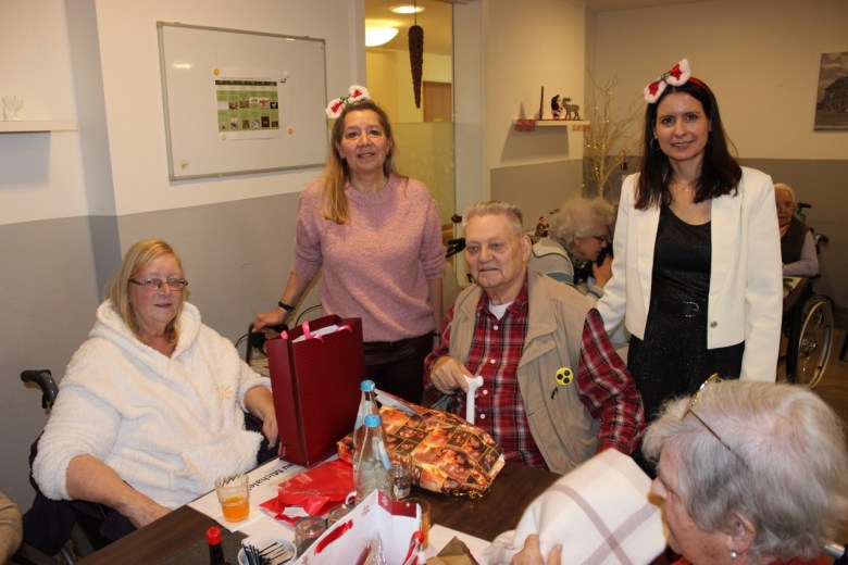 Claudia Schäfer, Jorge Alves Lourenco und Verena Barysch übergaben die Geschenke am Donnerstag, 18. Dezember, im Seniorenzentrum Alloheim/ AGO Herkenrath an die Bewohner.
