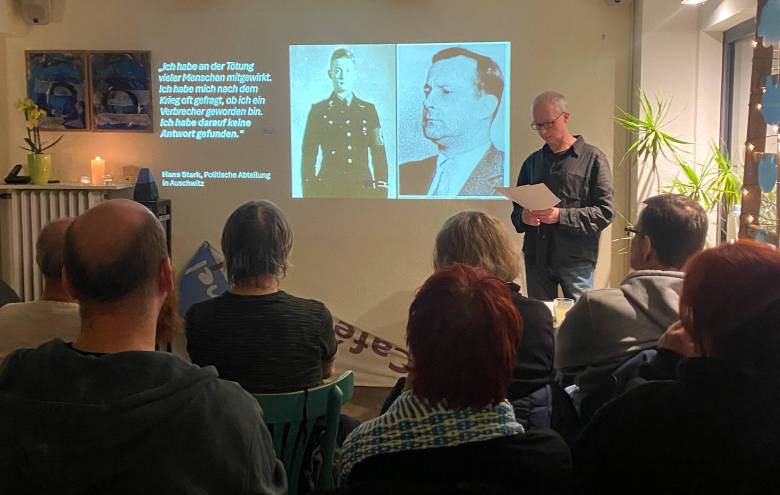 „Die ganze Prozedur dauert zwanzig Minuten – und der Körper verwandelt sich in Asche.“ Mit diesem Zitat von Salmen Gradowski, einem Mitglied des jüdischen Sonderkommandos Birkenau, begann Roland Vossebrecker vom Verein Bergisch Gladbach für Demokratie und Vielfalt im Begegnungscafé Himmel & Ääd seinen eindrucksvollen Vortrag zu der Frage: Wie geht „richtiges“ Gedenken.