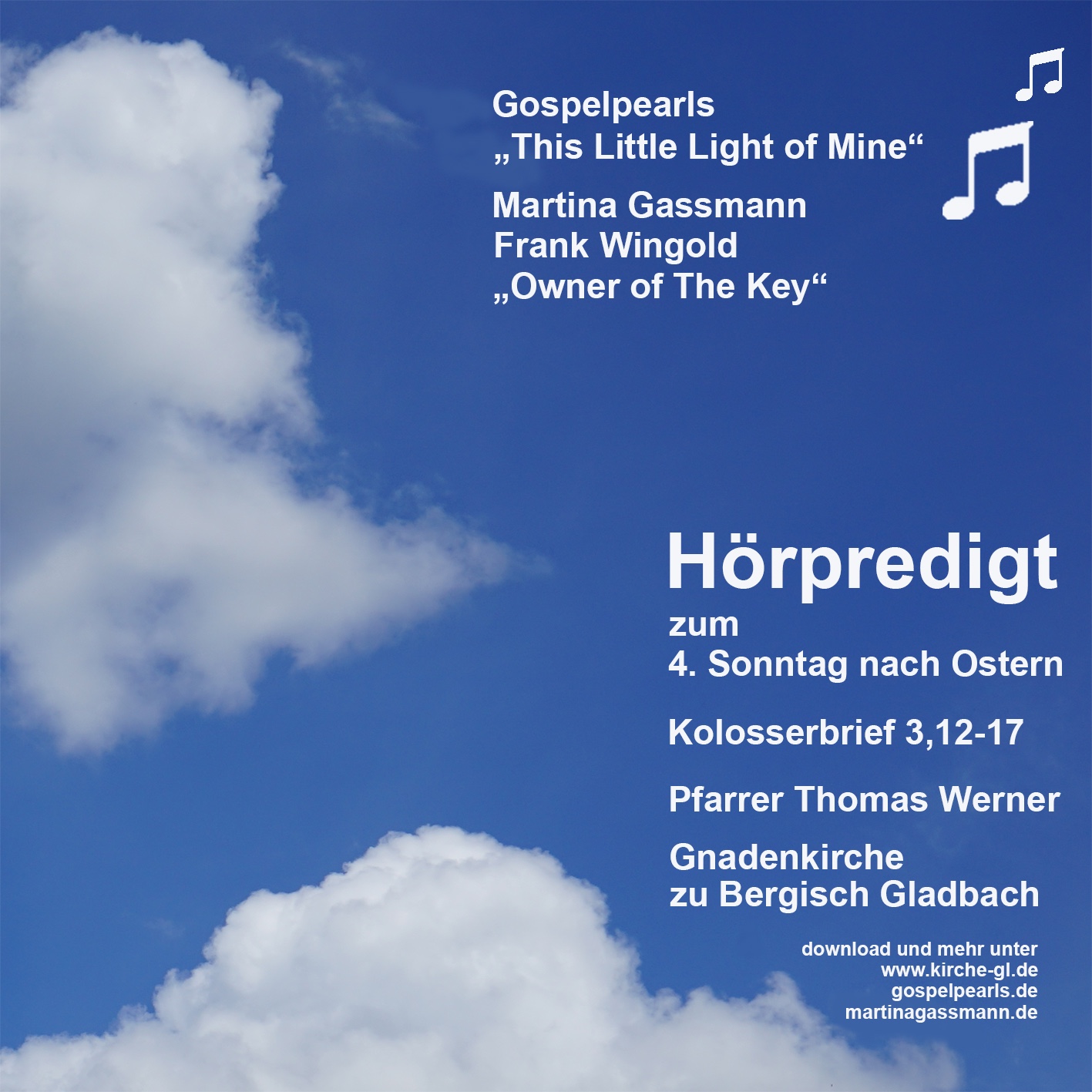 An Neujahr überträgt die Gnadenkirche eine weitere musikalische „Fensterandacht“ über Lautsprecher vom Dach des EVK. Außerdem gibt es zwei Hörpredigten zum Jahreswechsel, von Prädikant Walter Wielpütz und Pfarrer Thomas Werner. Im Podcast finden Sie alle Predigten der Gnadenkirche, auch die Video-Weihnachtsausgaben mit viel Musik.