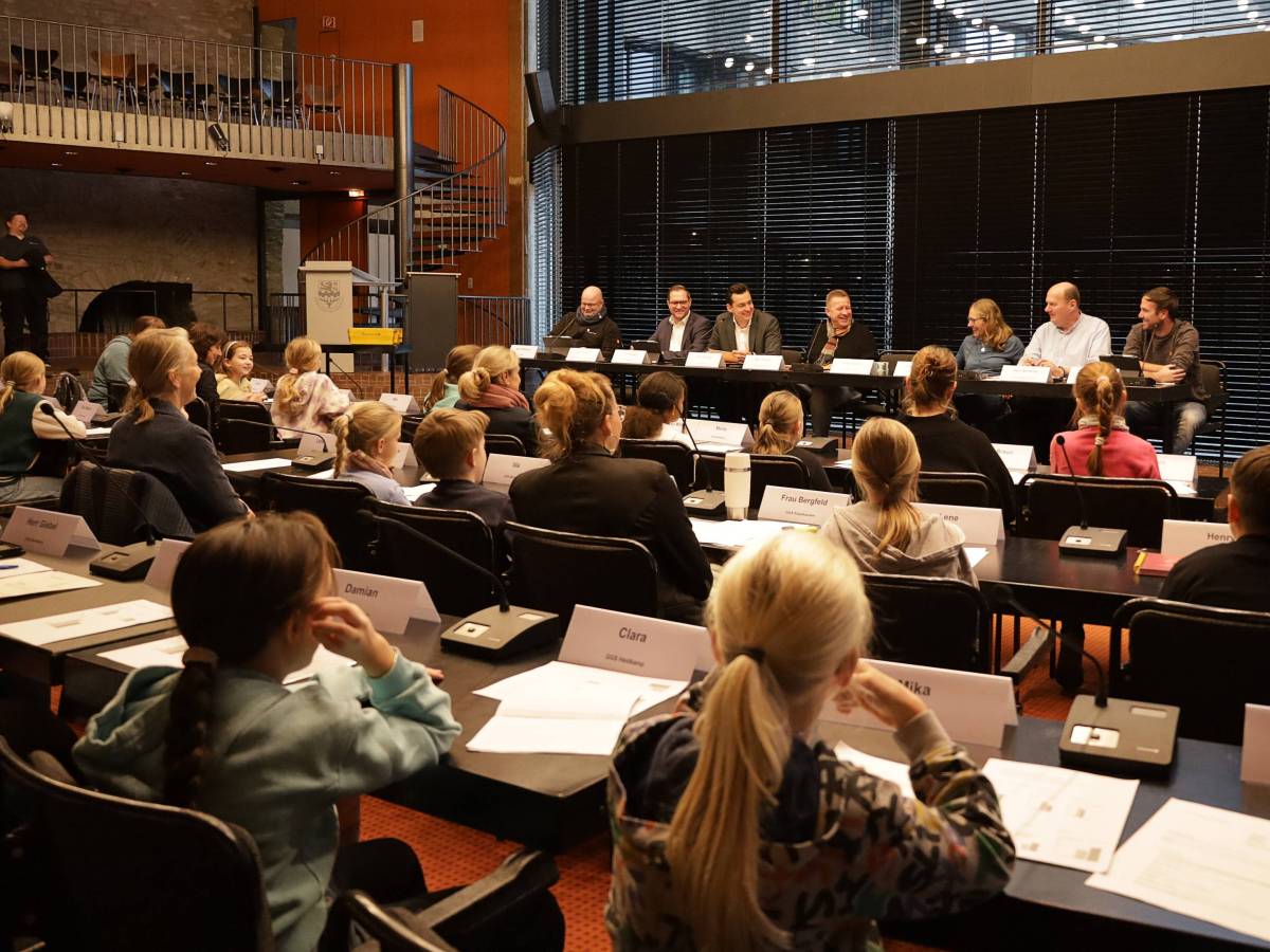Wo sonst der Stadtrat tagt, dort saßen jetzt die Sprecher:innen von 15 Grundschulen und diskutierten mit dem neuen Bürgermeister Marcel Kreutz und Vertretern seiner Verwaltung. Dabei trugen sie fünf wichtige Problemfelder vor – von denen nun zwei Anliegen in den Stadtrat eingebracht werden sollen.