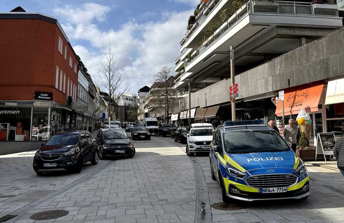 Die illegalen Parkplätze auf der Schlossstraße waren auch am Donnerstag weitgehend ausgebucht, der Blindenleitweg blockiert. Die Falschparker wurden von einem Polizeifahrzeug angeführt, Strafzettel oder das Stadtordnungsamt waren nicht auszumachen. in-gl.de**