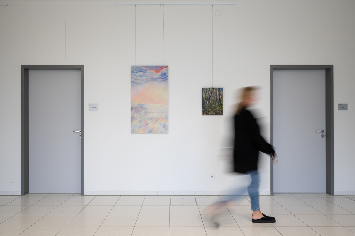 „Zwischen Erde und Mond – die neue Romantik“: Im Kreishaus stellt das Kreiskulturamt Werke der Künstlerin Lukrezia Krämer aus. Unsere Kunstreporterin Antje Schlenker-Kortum sprach mit der Künstlerin über Beruf und Berufung – und darüber, wie man den Kopf frei bekommt. in-gl.de