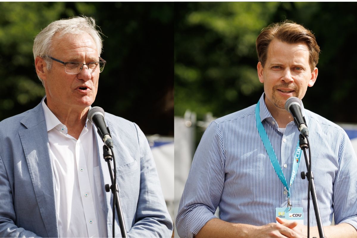 Mit nur wenigen Stimmen Unterschied im ersten Wahlgang liefern sich Alexander Felsch und Marcel Kreutz bei der Bürgermeisterwahl ein Kopf-an-Kopf-Rennen. Beim Rededuell vor der Schlosstreppe in Bensberg geht es daher kontrovers zu. Bürgerinnen und Bürger verfolgen den Auftritt der beiden mit Spannung – und vielen Fragen. Wir fassen das Wichtigste in Text und Bild zusammen und dokumentieren das ganze Duell im Video.