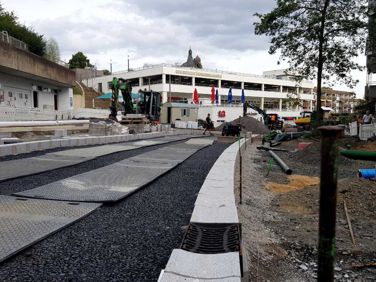 Trotz der Vollsperrung bewegt sich die Baustelle auf der Schlossstraße nicht so schnell wie gehofft. Immerhin wird nun – mit weiteren fünf Wochen Verspätung – die Kreuzung zur Nikolausstraße und damit die Durchfahrt zum Schloss freigegeben. Auch an der oberen Schlossstraße steht eine von den Geschäftsleuten seit langem angemahnte Verbesserung bevor.