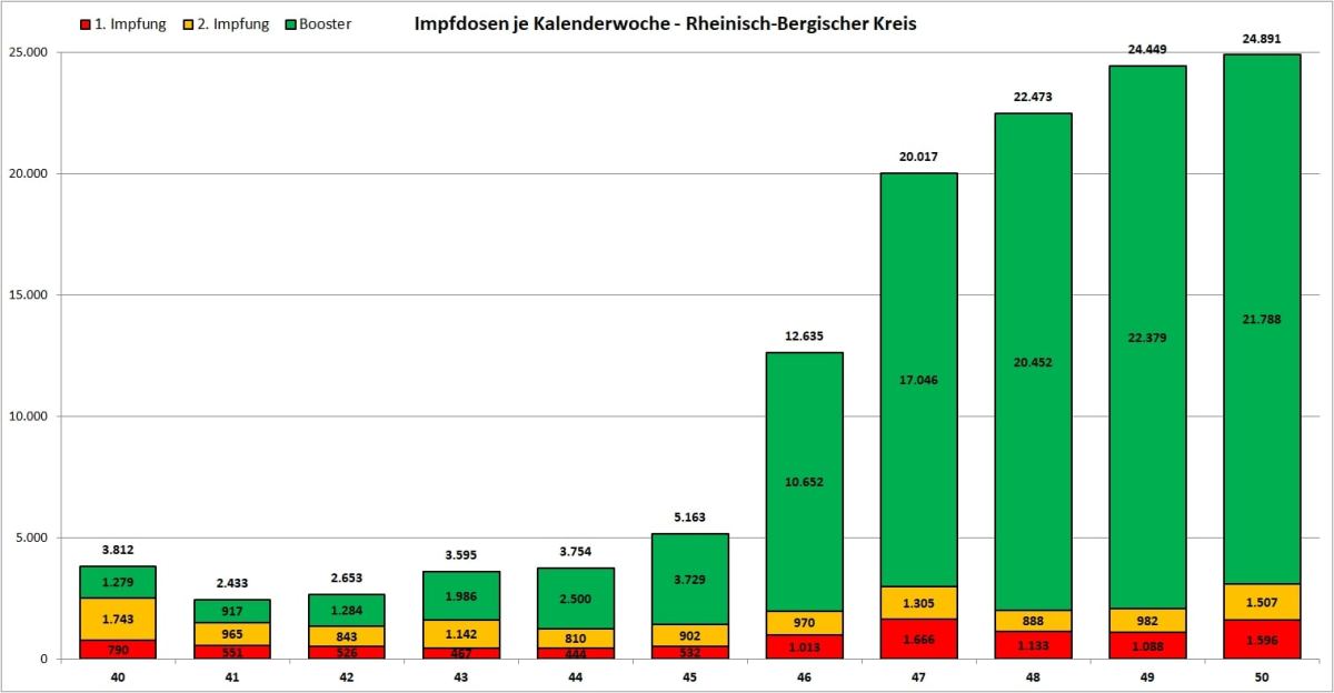 In den beiden vergangenen Wochen wurden im Kreis jeweils gut 24.000 Impfungen verabreicht; noch einmal deutlich mehr als in der ersten Impfkampagne im Frühjahr. Damit wird der Anteil der Personen, die bereits geboostert sind, rasch nach oben getrieben. Die eigentliche Impfquote kommt dagegen kaum voran – und auch das nur dank der neu zugelassenen Impfungen für Kinder.