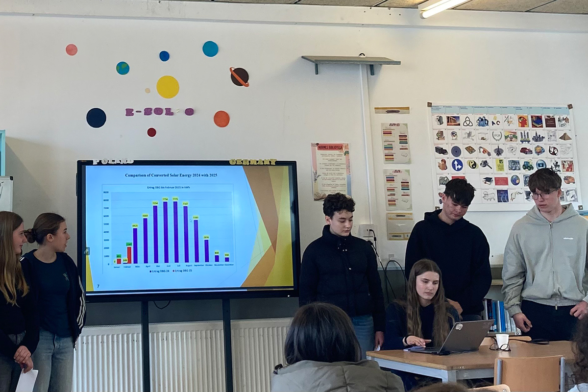 Im Rahmen des Erasmus+-Programms startet das Dietrich-Bonhoeffer-Gymnasium ein internationales Projekt zur Nutzung regenerativer Energien. Gemeinsam mit Schulen aus Polen und Spanien untersuchen Schülerinnen und Schüler die Leistung von Photovoltaikanlagen, entwickeln Experimente zur Sonnenbeobachtung und tauschen sich auf Englisch aus. Die Datenbasis liefert eine eigene PV-Anlage auf dem Schuldach.