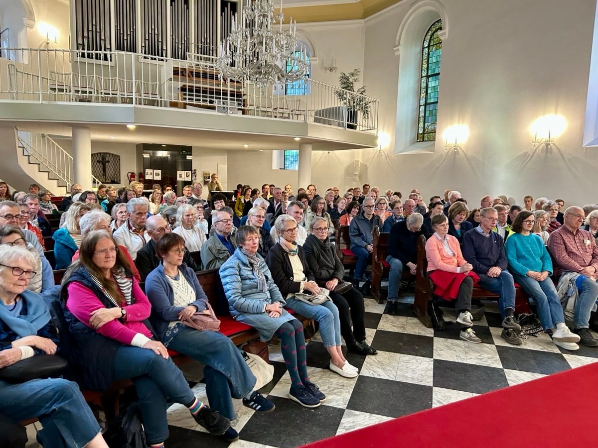 Die Gefahren für die Demokratie bewegen die Bergisch Gladbacher:innen nach wie vor stark: Rund 160 von ihnen sind der Einladung des Vereins Bergisch Gladbach für Demokratie und Vielfalt e.V. in die Gnadenkirche gefolgt – um mit dem Autor Jürgen Wiebicke darüber zu diskutieren wie die Demokratie gestärkt werden kann.