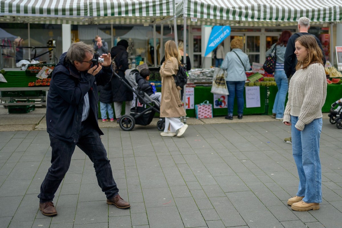 Der Fotograf Philipp J. Bösel hat bereits 100 Menschen für seine digitale Menschenkette fotografiert – die sich damit für Demokratie und Vielfalt positionieren. Jeden Samstag ist er vor dem Stand des Vereins „Bergisch Gladbach für Demokratie und Vielfalt“ in der Fußgängerzone unterwegs.