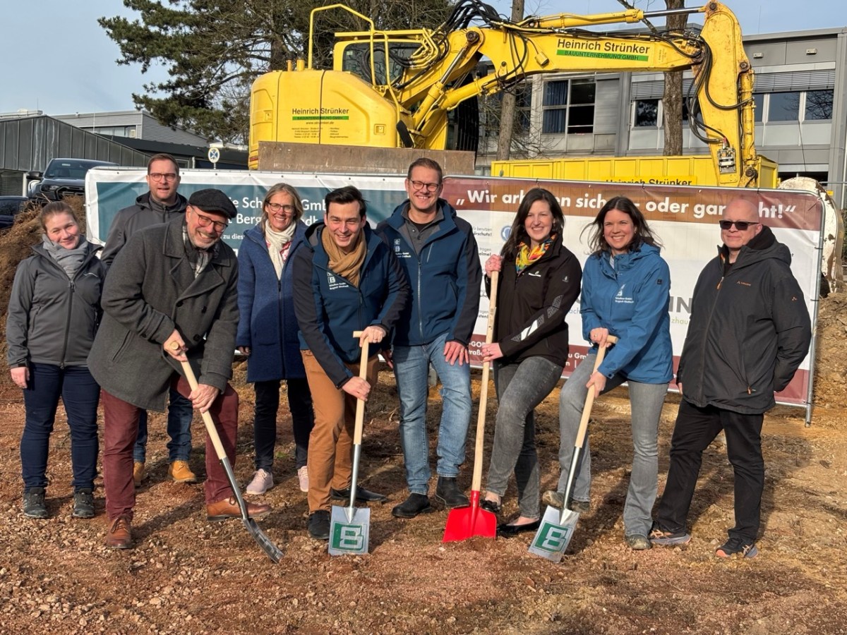 Am DBG und OHG konnte die Schulbau GmbH bereits Richtfest feiern, jetzt zieht sie mit dem offiziellen Spatenstich am Albertus-Magnus-Gymnasium (AMG) nach. Auch hier wird ein neues Klassenhaus gebaut und muss nach den Sommerferien für die Rückkehr zu G9 fertig sein. Ein knappe Kiste, räumen die Verantwortlichen ein.
