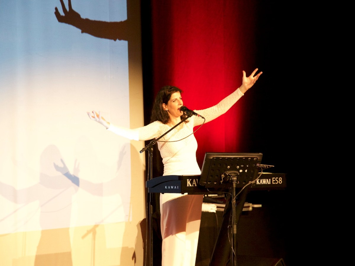 Wenn „Frau Höpker“ kommt, wird der Bergische Löwe zunächst ganz leer geräumt und dann sehr voll, mit sangeslustigen Besucher:innen. Die Mitsingkonzerte von Katrin Höpker, die sich als „musikalische Gesellschaftstherapeutin“ versteht, haben Kultstatus. Und offenbar funktionieren sie auch dann gut, wenn die Weltlage draußen besonders düster ist. Am Wochenende ist es wieder soweit.
