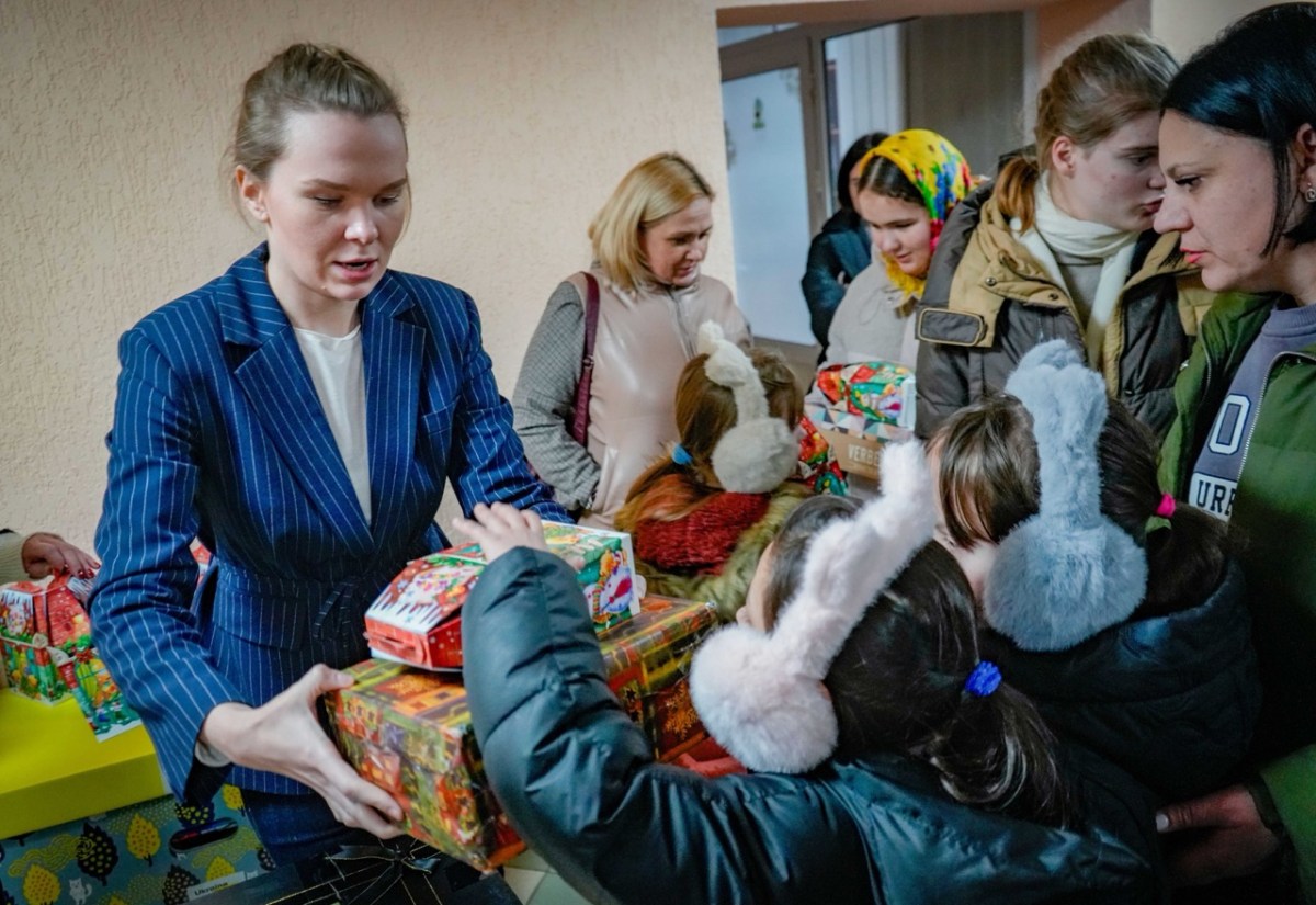Geschenke in Butscha an Waisenkinder übergeben