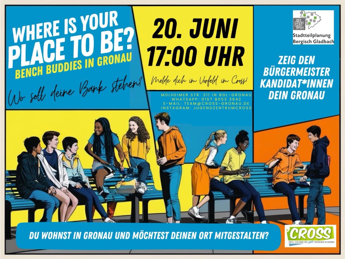 Gronau soll zehn neue Sitzbänke bekommen, um die Aufenthaltsqualität in dem Bergisch Gladbacher Stadtteil zu erhöhen. Über die genauen Standorte entscheiden Jugendliche. Die Stadt lädt sie für Freitag zu einem Workshop ins Kinder- und Jugendzentrum Cross ein, um gemeinsam geeignete Aufstellte auszuwählen.