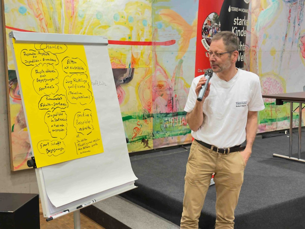Beim World Café von Terre des Hommes wurde intensiv über Rassismus und Diskriminierung gesprochen. Schülersprecher und Experten waren sich einig, dass wir mehr auf integrative Maßnahmen, besonders im Sport und in der Bildung setzen müssen, um allen Chancen zu eröffnen. Gleichzeitig wurde klargemacht, dass Politik und Gesellschaft mehr Engagement zeigen und auch finanzielle Mittel bereitstellen müssen.